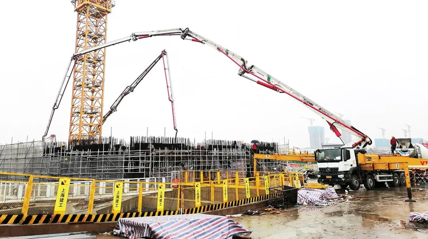 此次底板澆筑的混凝強度等級達C50P10,屬于高強度混凝土,其配合比更是屬于施工方“量身定制”,混凝土性能提升的同時也給泵車施工帶來了巨大的壓力。