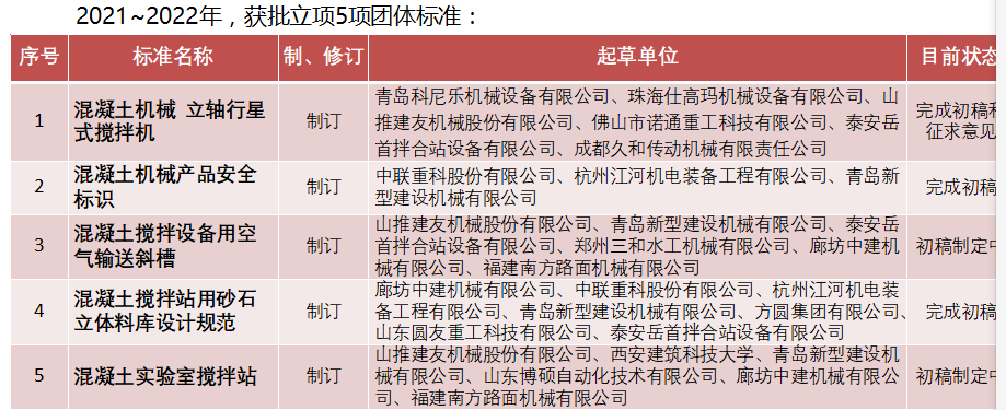 2022年召開第五屆中國工程機(jī)械工業(yè)協(xié)會標(biāo)準(zhǔn)化專家委員會(混凝土機(jī)械)全體會議,加強(qiáng)和促進(jìn)與會單位流,充分發(fā)揮專家委員作用,共同堆進(jìn)團(tuán)體標(biāo)準(zhǔn)發(fā)展。