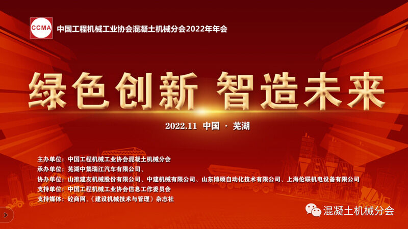 2022年11月17日至19日,以“綠色創(chuàng)新 智造未來”為主題的中國(guó)工程機(jī)械工業(yè)協(xié)會(huì)混凝土機(jī)械分會(huì)2022年年會(huì)在安徽蕪湖隆重舉行。