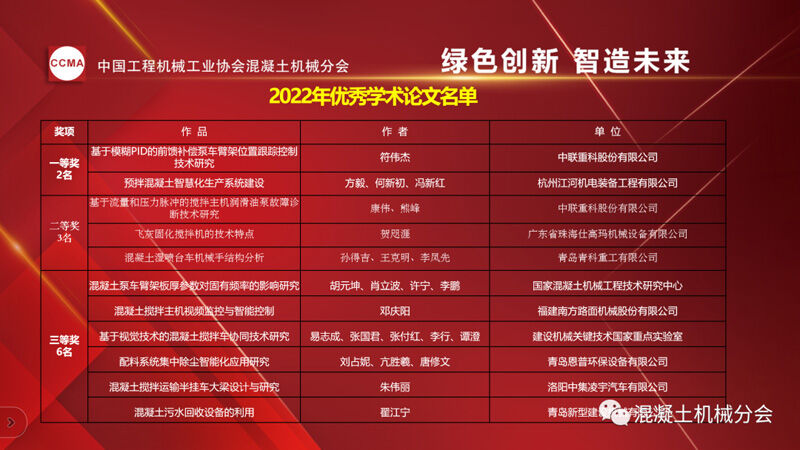 中國(guó)工程機(jī)械工業(yè)協(xié)會(huì)混凝土機(jī)械分會(huì)副秘書長(zhǎng)龍衛(wèi)平先生宣讀《關(guān)于發(fā)布2022年混凝土機(jī)械優(yōu)秀論文獲獎(jiǎng)名單的通知》。
