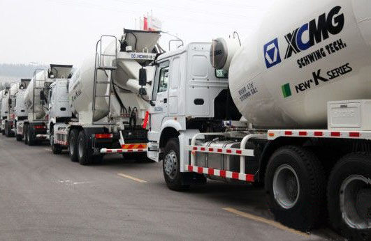 近日,江蘇某租賃公司批量采購的混凝土攪拌車在徐工施維英攪拌機械制造基地成功發(fā)車。活動現(xiàn)場,徐工產(chǎn)品隊列大氣磅礴,系在新車上的紅色綢帶和現(xiàn)場的氣氛相得益彰??蛻魧π旃せ炷翑嚢柢嚫咝е悄?、穩(wěn)定安全、節(jié)能實用的產(chǎn)品特點發(fā)出了由衷的贊嘆。