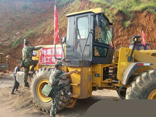 趕到災(zāi)區(qū)的徐工救援隊(duì)指揮徐楠聯(lián)系上當(dāng)?shù)卣筒筷?duì),在辦理好登記等相關(guān)手續(xù)后,積極請戰(zhàn)要求分派任務(wù),主動(dòng)要求到最困難和最需設(shè)備的地方。中國武警部隊(duì)第三總隊(duì)領(lǐng)導(dǎo)經(jīng)過現(xiàn)場開會(huì)部署,決定臨時(shí)征用徐工一臺(tái)裝載機(jī)加入武警救援部隊(duì)。