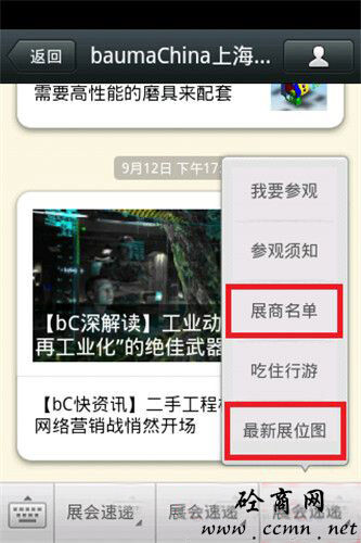 China的公眾微信號(baumachina),在微信菜單“觀眾中心”即可輕松查看展位圖及展商名單