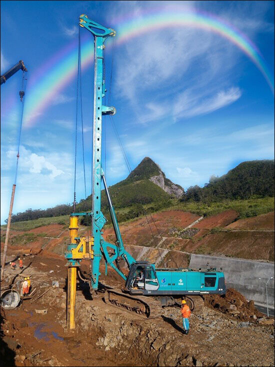 面對復(fù)雜的地質(zhì)情況及施工條件,而工程承包方施工建設(shè)多集中在水壩、水電站、公路等領(lǐng)域,旋挖樁基礎(chǔ)施工涉及不多,經(jīng)驗(yàn)有限。加之毛里求斯島國物資缺乏、施工周期緊,山河智能現(xiàn)場服務(wù)人員與公司總部日夜緊急聯(lián)動,及時調(diào)整作業(yè)方式,采取分段施工、埋深護(hù)筒等方法,定制成套施工解決方案,憑借公司