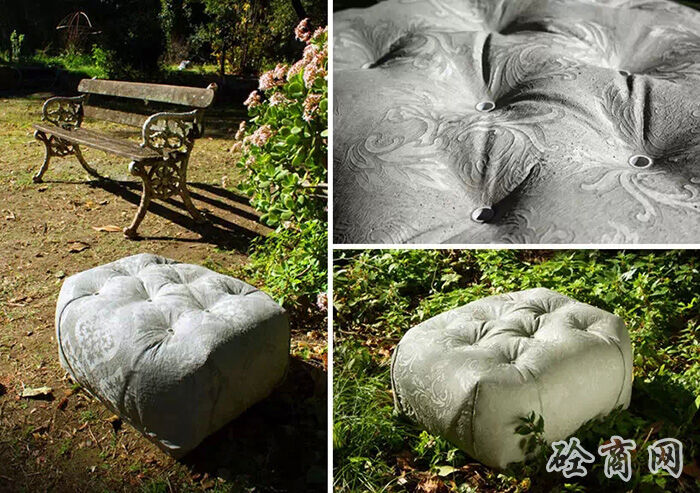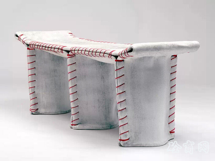 德國設(shè)計(jì)師florian schmid設(shè)計(jì)了一種“縫合混凝土”座椅,這個(gè)設(shè)計(jì)受到了混凝土帆布(CC)材料的影響?;炷敛剂鲜且环N浸漬了布料的柔軟水泥,它在水合過程中變硬,最終形成一個(gè)輕薄的,防水防火的混凝土表皮,將柔軟溫暖的布料質(zhì)感和堅(jiān)硬冰冷的水泥融為一體。