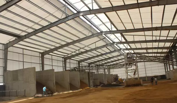 1.孫總,你好!請(qǐng)問這個(gè)料倉看著很漂亮而且這個(gè)材質(zhì)比較特殊您給大家介紹一下吧。孫總:我們這個(gè)料倉應(yīng)該是青島市最大,環(huán)保型的料倉;它采用的的全封閉式的結(jié)構(gòu),大大的降低的粉塵物的污染。而且我們這個(gè)料倉采用的沙灘帳篷的材質(zhì),是一種比較高級(jí)的尼龍纖維,它的壽命比彩鋼板高出2倍左右,而且它的采光非常好,你可以看到料倉里面的光線是非常充足的,我們是四面封閉,也滿足了環(huán)保的需求。