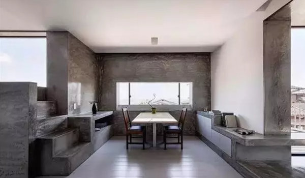 清水混凝土的材質(zhì)效果可以表達(dá)高技和冷酷的色域,或者趣味的藝術(shù)空間。它可能不適合每一個(gè)人,但它卻對(duì)空間形成一種獨(dú)特的質(zhì)感和氣氛。如果操作不當(dāng),會(huì)讓人覺(jué)得不舒適,因?yàn)槟阃浟嘶炷林挥性谡_的設(shè)計(jì)師之手才能表現(xiàn)出最完美的張力,而且混凝土可以是一個(gè)赫然的時(shí)尚元素。