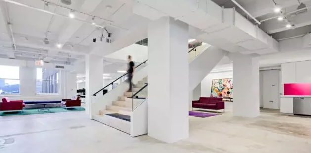 辦公空間大面積采用混凝土材料整體地坪,與現(xiàn)代風(fēng)格的軟裝相互搭配,偶爾點(diǎn)綴期間的鮮活色彩,在整體純色空間形成對(duì)比,粗獷與精致相互交融,打造出全然開(kāi)放通透、時(shí)尚簡(jiǎn)約的空間環(huán)境。