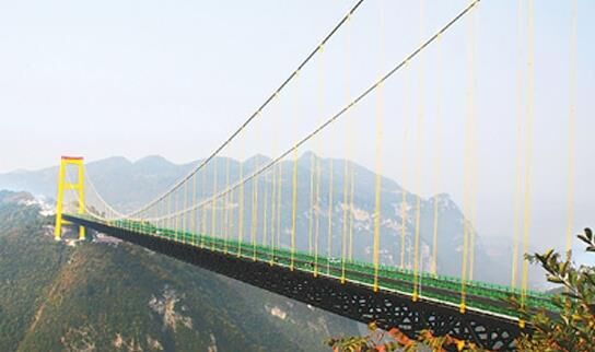 中聯(lián)重科塔機產(chǎn)品參建世界第一高橋龍?zhí)逗犹卮髽?,堪稱“天路中的天橋”。大橋主跨900米,索塔頂距谷底650米,橋面距谷底560米,相當(dāng)于200層樓高,比目前世界最高橋法國米約大橋分別高307米和290米。大橋的另一端距離公路隧道23米,借助火箭彈發(fā)射先導(dǎo)索過峽谷,開創(chuàng)了國內(nèi)乃至世界建橋史上的先河。龍?zhí)逗犹卮髽虻淖畲髽蚨崭哌_178米,創(chuàng)下連續(xù)鋼構(gòu)箱梁橋墩高度的世界之最,被譽為“世界第一高懸索橋”。