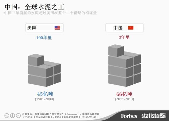 比爾·蓋茨做了一個(gè)令人震撼的對比,讓大家對中國在二十一世紀(jì)對水泥的狼吞虎咽有一個(gè)直觀認(rèn)識。比爾·蓋茨在個(gè)人博客上表示,2011年至2013年期間,中國消耗了66億噸水泥,超過美國在整個(gè)二十世紀(jì)的消耗量。但是看看美國在1901年至2000年期間建造了哪些工程:各種摩天大樓、州際公路、胡佛水壩等等,而期間消耗的水泥總共只有45億噸。不過,蓋茨沒有能夠呈現(xiàn)中美兩國地理環(huán)境、建筑習(xí)慣的差異,因而有些大驚小怪。