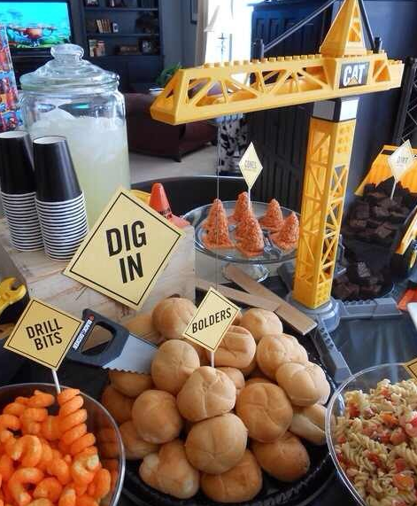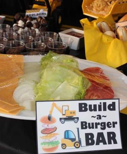 這里是主食區(qū),鑒于工程機(jī)械行業(yè)人人心靈手巧,請用此挖掘機(jī)DIY漢堡享用!各位,吃飽了也別忘了把這些土塊清清干凈那!