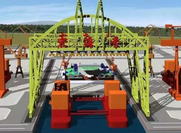 “宏?!碧?2000噸起重機(jī),主要用于海上石油鉆井平臺(tái)整體的從陸地運(yùn)到海上,將以往“化整為零”的建造方式變?yōu)椤罢嬲 ?。借?2000噸起重能力的“大家伙”,把拼裝好的海洋油氣鉆井平臺(tái)從陸地上的專用拼裝胎位上提起來,直接放到海上去。設(shè)備總體高度150米,提升高度最高為65米,相當(dāng)于把重量為500節(jié)高鐵車廂或20層樓高的超重、超大型物件提升起來并行走。主體采用桁架式結(jié)構(gòu)、拱形外觀、多吊點(diǎn)雙吊梁承載,跨度124.3米,宏海號總重14800噸,相當(dāng)于兩個(gè)埃菲爾鐵塔的重量?!伴_下門,快遞到了啊,你的鉆井平臺(tái)~”