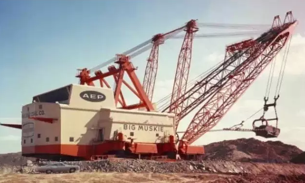 BIG MUSKIE官方編號為BE-4250W,是迄今最大的步進(jìn)式拉鏟,1967年B-E開始為美國的一個(gè)露天煤礦建造它,直至1969年5月建成并投入使用,當(dāng)時(shí)的制造費(fèi)用為2500萬美元,專門用于土石剝離。它有22層樓高,用13800V高壓電驅(qū)動(dòng),僅空鏟斗的重量就有209噸;1991年Big Muskie因礦區(qū)采空而停止運(yùn)行,1999年爆破拆解,僅鏟斗留存下來。有卡車對比圖哦~