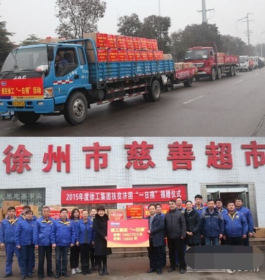 近日,八輛大卡車滿載著徐工全體員工的捐款和衣物,緩緩駛?cè)胄熘菔猩鐣头鲋行?,送去徐工承?dān)的社會責(zé)任、徐工人的美德。2015年,在各單位的全力支持和全體員工暖暖愛心的捐助下,徐工集團扶貧濟困“一日捐”活動共收到捐款1382175.5元、捐衣物13830件,連續(xù)14年捐款捐物全市第一。
