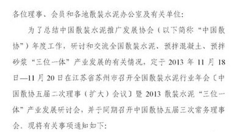 關于召開全國散裝水泥行業(yè)年會暨2013散裝水泥“三位一體”產(chǎn)業(yè)發(fā)展研討會的通知
