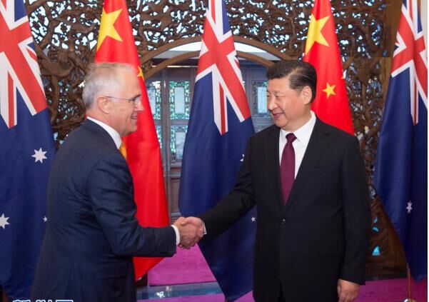 習(xí)近平指出,當(dāng)前,中澳關(guān)系保持積極發(fā)展勢(shì)頭,兩國(guó)各領(lǐng)域交流合作日益密切。中澳全面戰(zhàn)略伙伴關(guān)系具有強(qiáng)勁活力,雙方要把握兩國(guó)關(guān)系發(fā)展正確方向,尊重彼此核心利益和重大關(guān)切,確保中澳關(guān)系持續(xù)健康穩(wěn)定發(fā)展。希望雙方做好中方“一帶一路”倡議同澳方“北部大開(kāi)發(fā)”計(jì)劃、中國(guó)創(chuàng)新驅(qū)動(dòng)發(fā)展戰(zhàn)略同澳方“國(guó)家創(chuàng)新與科學(xué)議程”的對(duì)接,實(shí)施好中澳自由貿(mào)易協(xié)定,探討開(kāi)展更多務(wù)實(shí)合作項(xiàng)目,推進(jìn)司法執(zhí)法、防務(wù)等領(lǐng)域交流合作。