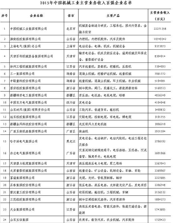 機(jī)械百?gòu)?qiáng)名單
