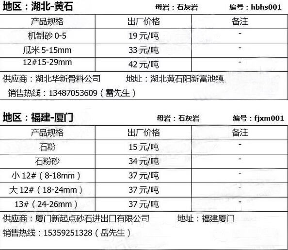 大宗砂石在線交易是“互聯(lián)網+砂石”生態(tài)圈重要一環(huán),今日小編給大家整理此份報價表旨在幫助廣大砂石需求商(攪拌站、工程建設單位、砂石貿易商等)以最快捷、最高效、最優(yōu)惠的方式來獲取優(yōu)質的砂石產品,同時也為誠信優(yōu)秀的砂石企業(yè)打開一扇創(chuàng)新之窗,讓好的企業(yè)得到良性發(fā)展,讓好的砂石產品獲得市場機會,砼商網將定期為市場提供各種規(guī)格的砂石產品及報價信息,敬請關注!