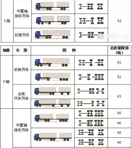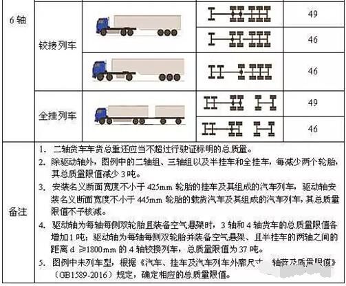 按照《道路車輛外廓尺寸、軸荷及質量限值》確定的最大質量限值作為認定標準。其中,最大的變化是6軸車由55噸變?yōu)?9噸。