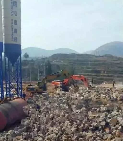 接報后,記者迅速趕往現(xiàn)場調查。在邢臺縣太子井鄉(xiāng)峰門村村西一公里附近,發(fā)現(xiàn)了該攪拌站?,F(xiàn)場已用鐵架子架起了兩個個高高的圓形槽罐,槽罐罐體上醒目標有“中國電建路橋”幾個大字。一些工人正在一旁施工,兩臺鉤機輛和塔吊也正熱火朝天地作業(yè),工地一角建設的住房也已經蓋有一米來高。大量石子凌亂地散布在施工現(xiàn)場。根據目測估計,這家攪拌站至少占地20余畝。