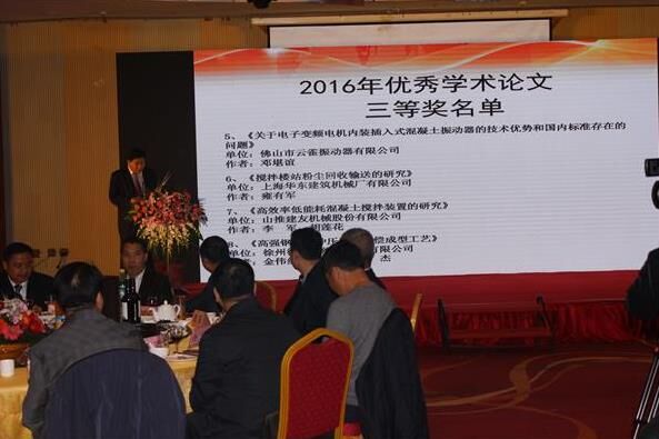 晚宴進(jìn)行過程中,中國工程機(jī)械工業(yè)協(xié)會(huì)混凝土機(jī)械分會(huì)符忠軒會(huì)長上臺(tái)宣讀了《關(guān)于2016年學(xué)術(shù)論文評(píng)獎(jiǎng)結(jié)果的通報(bào)》,并進(jìn)行了優(yōu)秀論文頒獎(jiǎng)活動(dòng)。