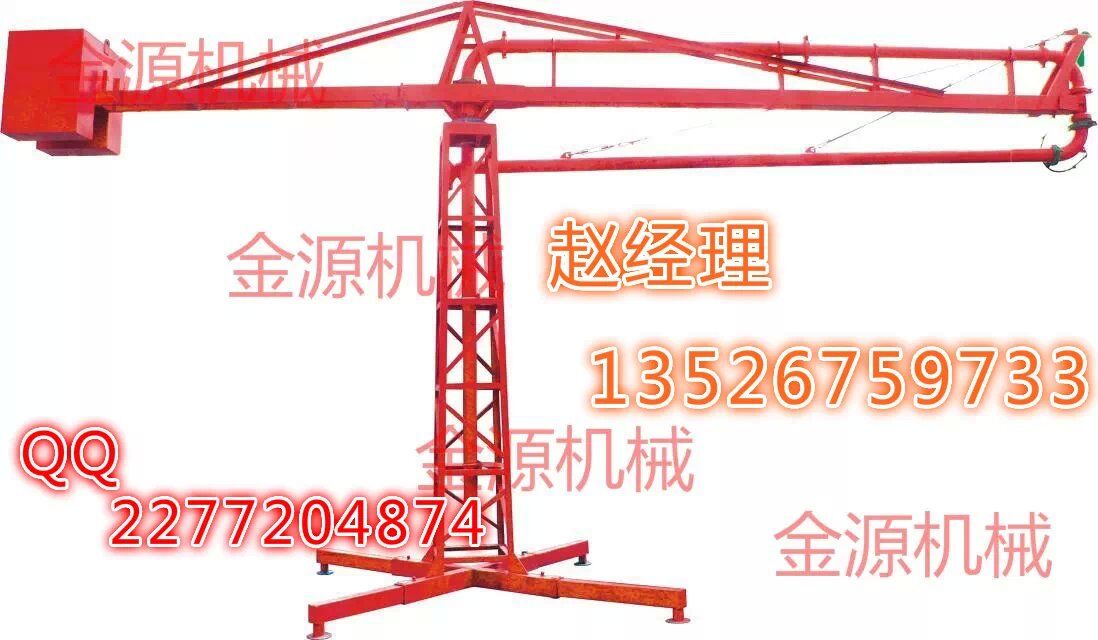 結(jié)構(gòu):、插銷(xiāo)、立架、構(gòu)成的底座是固定部分,其上通過(guò)回轉(zhuǎn)支承與上部回轉(zhuǎn)部分相連,上主梁架、平衡臂、平衡臂架拉桿、上橫桿組成后回轉(zhuǎn)部分。立管上有回轉(zhuǎn)卡篐接頭。通過(guò)人力拉動(dòng),可使整個(gè)回轉(zhuǎn)部分回轉(zhuǎn)360度。上梁主架前端連接有一個(gè)回轉(zhuǎn)支座與前橫桿、前拉桿組成前回轉(zhuǎn)部分,在人力拉動(dòng)下可繞回轉(zhuǎn)支座旋轉(zhuǎn)300度。由兩部分回轉(zhuǎn)架組成的合成運(yùn)動(dòng)就能覆蓋所有布料半徑范圍的布料點(diǎn)。