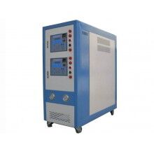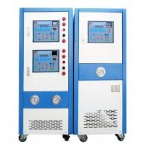 泵浦驅(qū)動(dòng)傳熱介質(zhì)(通常為水或油)從內(nèi)置加熱器中到達(dá)需要控溫的設(shè)備,再從控溫設(shè)備回到加熱器中.控制器根據(jù)溫度傳感器測(cè)量的熱流體溫度或控溫設(shè)備內(nèi)部溫度,調(diào)節(jié)熱流體的溫度從而調(diào)節(jié)控溫設(shè)備的溫度.