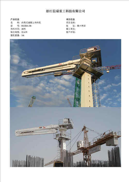 歸屬行業(yè):信瑞重HG24A-3R電梯井內(nèi)爬混凝土布料機(jī)