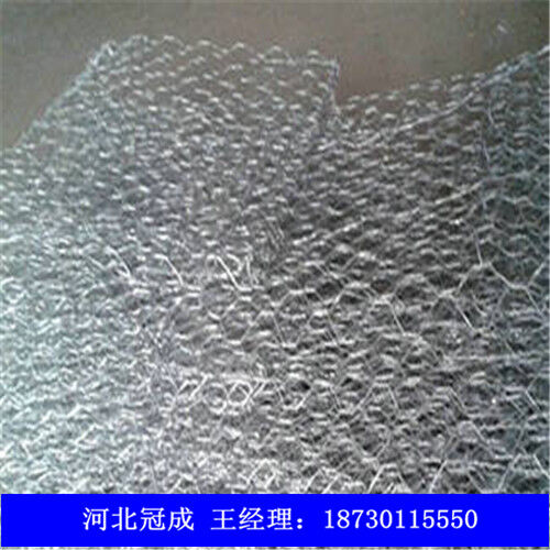 六角網(wǎng)墊由機械編制而成的六邊形網(wǎng)片組合的一種結(jié)構(gòu)體,高度為小于30cm??梢詾閱卧\體,也可為用間隔網(wǎng)片分隔成的多格籠體。按照ASTM A975-97規(guī)范組裝而成。工程現(xiàn)場填充石料組裝形成柔性的、透水的、整體的支擋結(jié)構(gòu),用于生態(tài)防護工程。網(wǎng)絲采用高鍍鋅鋼絲或者10%鋁鋅合金鋼絲,如果環(huán)境條件比較惡劣,污染比較嚴重,可以在鋼絲的表面涂塑(PVC),以增強網(wǎng)絲的抗腐蝕性能。
