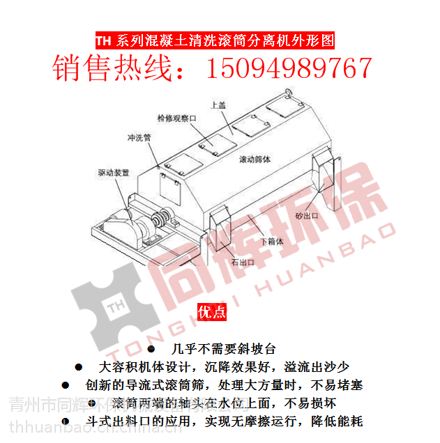 該裝置機(jī)械結(jié)構(gòu)簡(jiǎn)單,環(huán)保效益顯著:分離出砂石表面光潔,砂子含灰≤1%,含水≤3-5%;洗車水循環(huán)使用,污水達(dá)到零的排放;設(shè)備耐磨,操作簡(jiǎn)單,便于清理檢修。