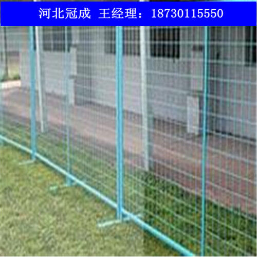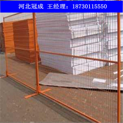臨時(shí)護(hù)欄網(wǎng),又可以稱為移動(dòng)圍欄,臨時(shí)隔離欄,移動(dòng)式安全圍欄網(wǎng) 臨時(shí)護(hù)欄分類臨時(shí)護(hù)欄從工藝上來看可以分為兩種:1.焊接網(wǎng)臨時(shí)護(hù)欄;2.編織網(wǎng)臨時(shí)護(hù)欄。 1.焊接網(wǎng)臨時(shí)護(hù)欄網(wǎng) 主要規(guī)格如下 絲徑:3.6-6mm 孔徑:50X200mm 75X150mm 80X160mm 100X200mm等 網(wǎng)片高度:1.0-2.0m 網(wǎng)片寬度:2.0-3.0m 立柱:方形柱 圓形柱 桃形柱 新型防盜柱 表面處理:熱度鋅、 浸塑、 噴塑、 噴砂、 靜電噴涂等。 顏色:以綠色為主(黃色,藍(lán)色等) 以上規(guī)格,顏色等也可根據(jù)客戶需要加工定做。 2.編織網(wǎng)臨時(shí)護(hù)欄 主要規(guī)格如下 絲徑:1.5-4mm 孔徑:50X50mm 60X60mm 70X70mm 等 網(wǎng)片規(guī)格:1mX2m 1.5mX2m 2mX2.5m 2mx3m等。 立柱:方形柱 圓形柱 表面處理:PVC包塑 熱鍍鋅 顏色:主要以綠色,藍(lán)色為主?! ∫陨弦?guī)格可根據(jù)客戶需求加工定做?! ∨R時(shí)護(hù)欄網(wǎng)是適用臨時(shí)隔離,臨時(shí)隔斷,臨時(shí)圈圍,是靈活性極強(qiáng)的產(chǎn)品。 臨時(shí)護(hù)欄網(wǎng)主要采用可拆接構(gòu)件將護(hù)欄主片與底座或防護(hù)柱進(jìn)行標(biāo)準(zhǔn)連接,等特定需要的時(shí)候可輕松拆除,進(jìn)行移動(dòng)安裝。