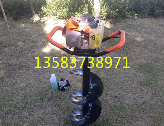 地鉆由小型通用汽油機(jī),齒輪箱及特殊設(shè)計(jì)的鉆具組成.適合在土地,凍土,冰層上打孔.廣泛用于園林,種植,植樹,物探,道路建設(shè)等領(lǐng)域. 2.鉆頭采用錳鋼合成更加的堅(jiān)硬。對硬土質(zhì),超硬土質(zhì),粘土,凍土等都能工作。 3.地鉆可根據(jù)樹種,選配多種規(guī)格的鉆頭,以滿足用戶需要。 4.地鉆能夠讓人們從繁重的體力勞動(dòng)解放出來,廣泛應(yīng)用于植樹造林,栽種果林、籬笆、及秋季給果樹施肥等。適合各種地形,效率高,便于攜帶及野外田地作業(yè)。 5.地鉆既可以單人操作,又可雙人操作,經(jīng)濟(jì)實(shí)用。 注意事項(xiàng):1.使用正品2T(二沖程)FC級機(jī)油,嚴(yán)禁使用4T(四沖程)機(jī)油。 2.嚴(yán)禁使用純汽油。 3.嚴(yán)格按25比1的比例兌油. 4.新機(jī)器不可高速使用,請低速磨合3小時(shí)。 5.嚴(yán)禁在高速的時(shí)候突然關(guān)停發(fā)動(dòng)機(jī),否則會(huì)使下次開機(jī)啟動(dòng)困難。 6.感覺機(jī)器震動(dòng)異常,請立即停機(jī)檢查,是否破損,松動(dòng),偏心。 7.嚴(yán)禁在有亂石堆的草地上使用。 8.鉆頭有嚴(yán)格的尺寸限制,嚴(yán)禁私自改裝或使用增大號鉆頭. 9.每工作一段時(shí)間清除火花塞、消音器積碳,清洗空氣濾清器,向齒輪箱加注黃油。 10.遇到問題自己無法解決的,不要私自拆裝。 11.機(jī)器長時(shí)間不用時(shí),應(yīng)該將剩余的燃油倒出,然后發(fā)動(dòng)機(jī)器將化油器內(nèi)的燃油全部燃燒干凈。 12.想讓機(jī)器運(yùn)轉(zhuǎn)更穩(wěn)定,壽命更長請經(jīng)常保養(yǎng)。 安全事項(xiàng): A.人身安全:嚴(yán)禁在室內(nèi)添加汽油,嚴(yán)防火災(zāi);機(jī)器運(yùn)行時(shí),嚴(yán)禁手腳靠近鉆頭;清理或檢查機(jī)器時(shí)必須停機(jī)。 B.機(jī)器安全:地鉆起動(dòng)前必須清理草坪上的雜物,確保機(jī)器安全運(yùn)轉(zhuǎn)。