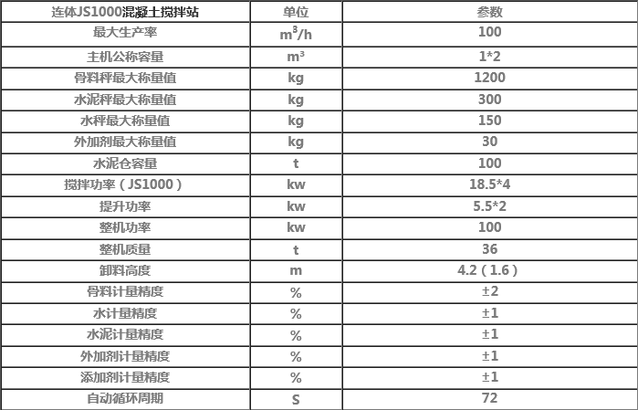 主機采用JS系列強制式攪拌機,可生產多種混凝土,生產效率高。