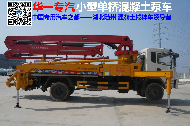 湖北華一專用汽車有限公司生產的小型泵車是國內首創(chuàng)小型混凝土臂架泵車,是目前國內體積小、一車兩用(高壓車載泵送、低壓泵送臂架布料)最具創(chuàng)意和經濟效益的臂架泵車,以機械化作業(yè),代替勞動力(能替代40多個勞動力),填充農、鄉(xiāng)、城、鎮(zhèn)建筑混凝土輸送的空白,適用于國家政策城鄉(xiāng)一體化建設不可缺少的專用車輛、具有靈活、方便、高效、經濟、智能的優(yōu)點,小型混凝土臂架泵車在湖北具有代表性。