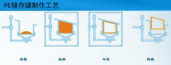 滾塑工藝的制作過(guò)程較為簡(jiǎn)單,我們將滾塑制作的步驟簡(jiǎn)化為以下的圖解: