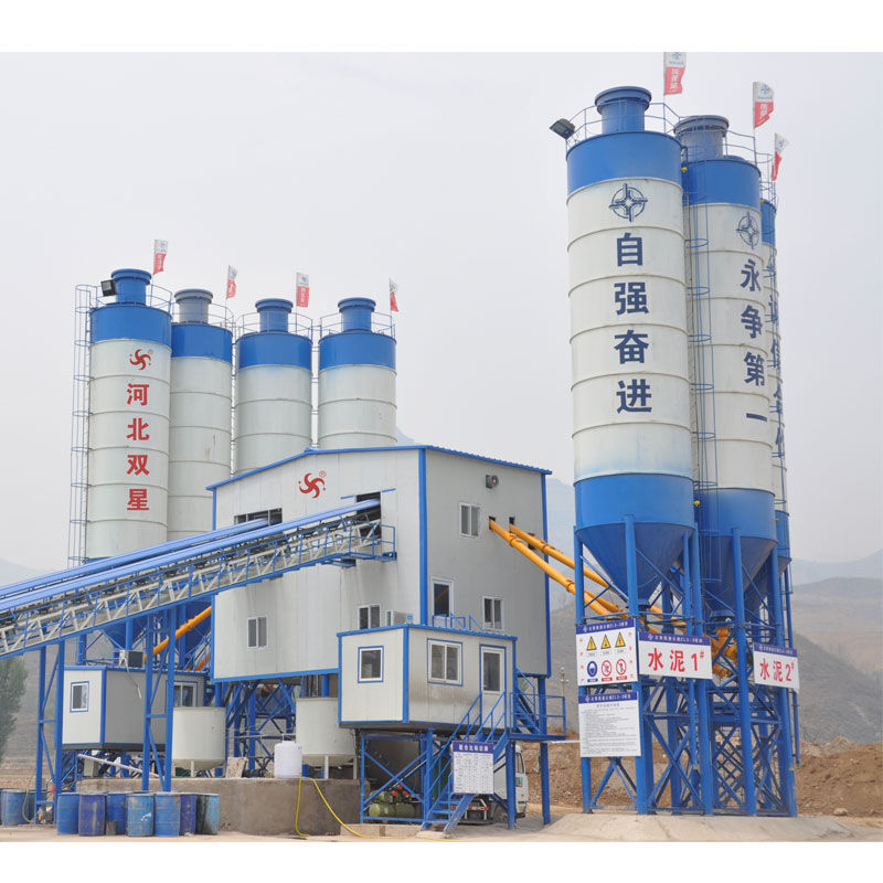 1.河北雙星HZS90混凝土攪拌站,該套混凝土攪拌站設(shè)備主機(jī)可配JS1500雙臥軸強(qiáng)制式混凝土攪拌機(jī)或進(jìn)口混凝土攪拌機(jī)。主機(jī)配有收塵機(jī),具有自動收塵、去濕、排風(fēng)、將收集的粉塵向主機(jī)回送再利用的功能。收塵效果 極佳 。水泥倉頂裝有圓筒式收塵機(jī),除塵效率高、噪音低。主機(jī)架采用彩鋼板包裝,整潔、美觀、防塵,具有 良好的 視野。雙帖合并安裝,既方便操作又節(jié)約場地。