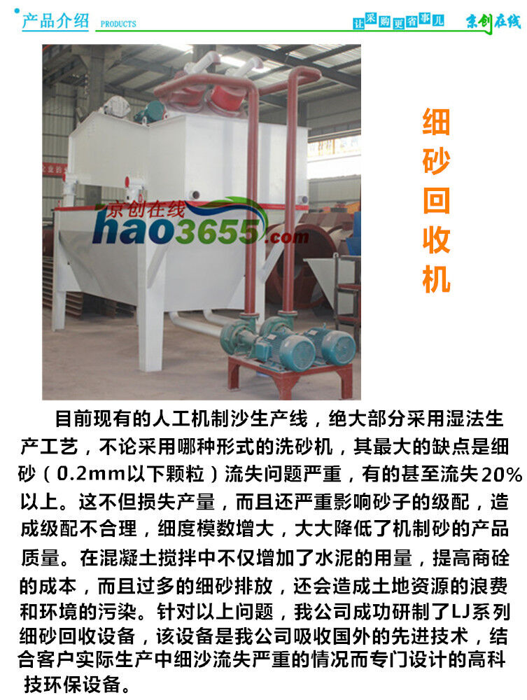 細沙回收機LJ700在實際運用當中,不需要額外增加用水量,能夠在原來排放的廢水當中提取回收85%以上被沖走的細沙或礦石,直接摻入成品堆或單獨存放作為高級別用材使用,直接替客戶挽回綜合經濟效益15%以上。本設備廣泛應用于水電站砂石骨料加工系統(tǒng)、玻璃原料加工系統(tǒng),人工制砂生產線、選煤廠粗煤泥的回收及環(huán)保工程(泥漿凈化等)等,可有效解決生產線細沙回收問題。