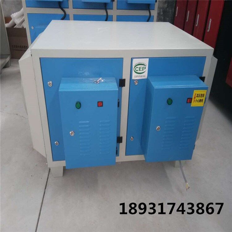 首先廢氣經(jīng)均流板過濾棉進(jìn)入設(shè)備時,由設(shè)備高壓穩(wěn)定高頻放電,瞬間產(chǎn)生1.5萬伏特至2萬伏特高壓,擊穿廢氣。此階段中,長鏈、多鏈廢氣分子由于鍵能較弱,約束力較小。很容易被擊穿化學(xué)鍵破裂,從而變成小分子化合物,此為第一階段凈化。其次,隨廢氣進(jìn)入設(shè)備的水分子、氧分子被高壓擊穿斷裂,生成強氧化基團羥基、臭氧分子等。這些強氧化基團與廢氣分子充分接觸氧化,加快反應(yīng)進(jìn)程。整個反應(yīng)干凈徹底,能量利用率高,凈化效率非常高。