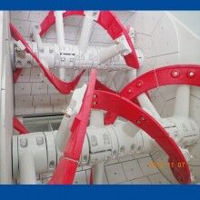 普通雙臥軸攪拌機(jī)的攪拌臂軸向及徑向均為流線型,攪拌過(guò)程中不僅對(duì)物料產(chǎn)生徑向切割作用,而且更有效的起軸向推動(dòng)作用,使物料攪拌更劇烈,短時(shí)間達(dá)到混凝土的均質(zhì)狀態(tài),且由于攪拌裝置設(shè)計(jì)獨(dú)特,能提高了水泥的利用率。而具有專利設(shè)計(jì)的雙螺帶攪拌裝置,攪拌過(guò)程兩軸相向轉(zhuǎn)動(dòng),葉片產(chǎn)生的攪拌力,使攪拌進(jìn)物料在保證劇烈徑向運(yùn)動(dòng)的同時(shí),軸向推動(dòng)加劇,物料在攪拌筒內(nèi)成沸騰狀態(tài)短時(shí)間內(nèi)劇烈而充分?jǐn)嚢瑁瑪嚢栊侍岣?/span>10%~15%,其它結(jié)構(gòu)攪拌機(jī)與之相比甚遠(yuǎn)。從而使攪拌形式更多樣化,根據(jù)不同的混凝土要求,使攪拌更均勻,效率更高。