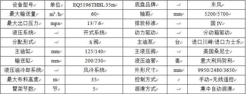 攪拌一體臂架泵車基本配置表
