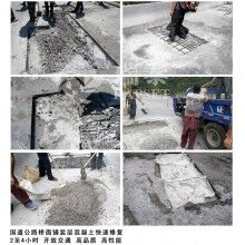 如果用普通水泥混凝土養(yǎng)護周期再少得一周,公路是重要的交通樞紐,不可能封路那么久。在反復對比分析下,四川阿壩自治州公路局決定采用一種新型材料—搶修寶快速修補料修復病害。這種快速搶修水泥在保證質量的同時,可以快速通車。30分鐘凝固,2-4小時通行,2小時強度可達到C30,施工工藝簡單,好掌握,修補效果好,已經(jīng)在全國范圍內獲得了廣泛的運用。