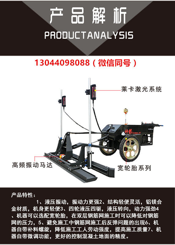 激光整平機(jī)適應(yīng)于鄉(xiāng)村道路混凝土地面、工業(yè)廠房和廠區(qū)地面,地下停車(chē)場(chǎng)地面、工業(yè)樓層地面等多元化混凝土場(chǎng)地施工,替代傳統(tǒng)振動(dòng)尺、振動(dòng)梁、振動(dòng)滾等人員多大面積累積誤差大等施工缺陷;