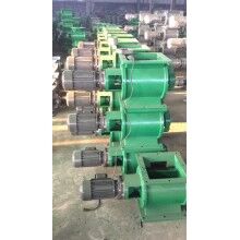 工作原理:星型卸料器工作時(shí),粉塵靠重力落入,充滿上面和側(cè)面的星形葉片空格。葉片轉(zhuǎn)子由電動(dòng)機(jī)通過(guò)減速機(jī)轉(zhuǎn)動(dòng)軸帶動(dòng),葉輪轉(zhuǎn)到下部粉塵靠自重卸下。這種卸塵器一般都安裝在除塵器灰斗下部,為保證連接處的嚴(yán)密不漏風(fēng),在回轉(zhuǎn)卸料器的上部應(yīng)經(jīng)常保持(儲(chǔ)存)一定高度的粉塵。因?yàn)槿~輪轉(zhuǎn)動(dòng)時(shí),卸完粉塵后葉輪轉(zhuǎn)上的那一面經(jīng)常是沒(méi)有粉塵的,所以容易使空氣漏入。為了保持一定高度的灰柱,而且不致卸空,*在灰斗內(nèi)裝設(shè)料位信號(hào)設(shè)施,并與卸塵閥的電動(dòng)機(jī)建立連鎖。