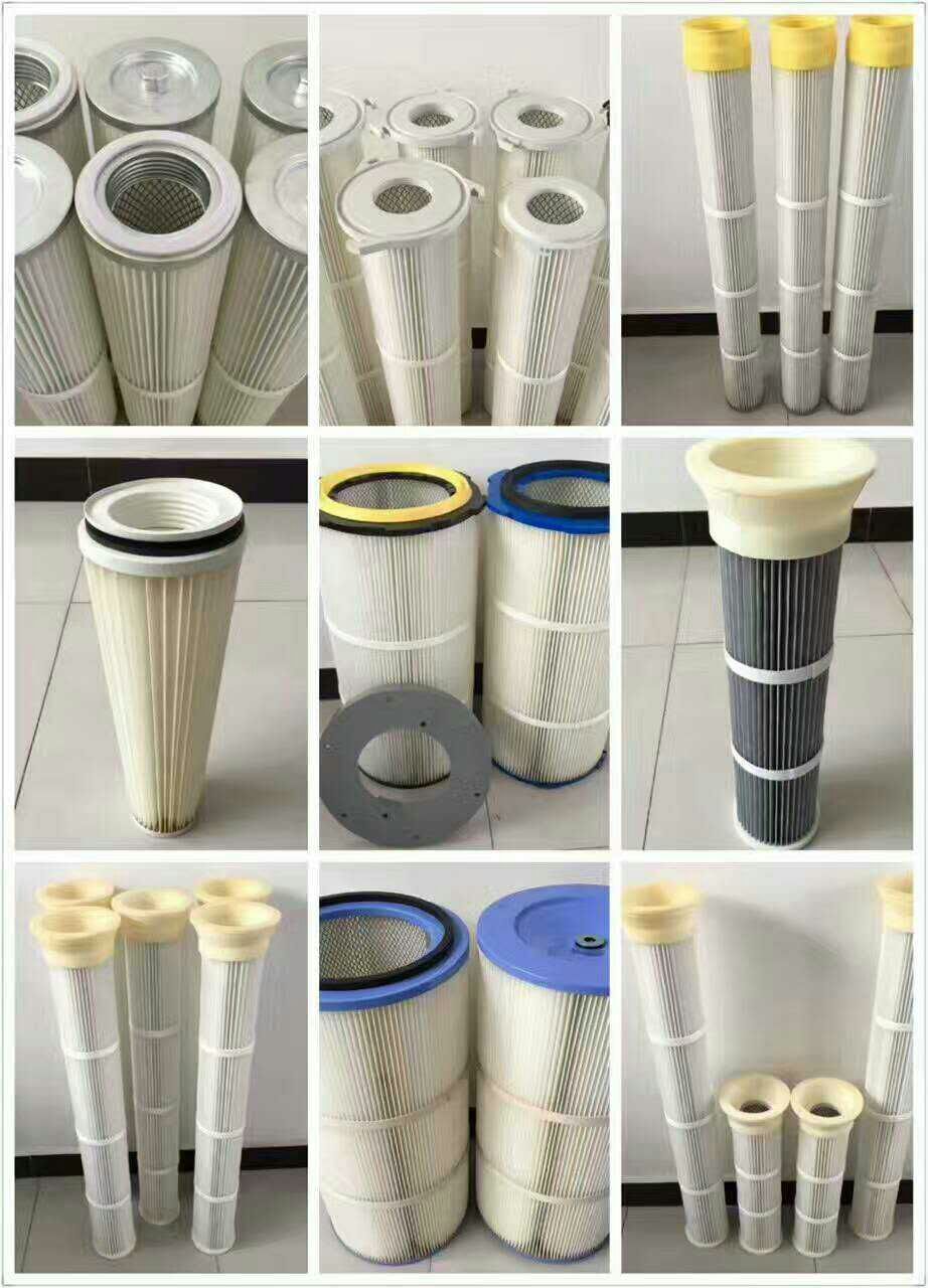 除塵濾筒構(gòu)造:除塵濾筒由經(jīng)過(guò)成型加工處理的濾材,支撐骨架,上下端蓋,橡膠密封圈組成。通過(guò)強(qiáng)力膠水將濾紙、支撐骨架,上下端蓋,粘連成一個(gè)完整的產(chǎn)品——濾筒。