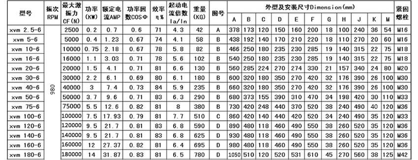 7、機(jī)種豐富,能振動機(jī)械的工作需要。XVM-50-6三相振動電機(jī) 功率3.7KW6級