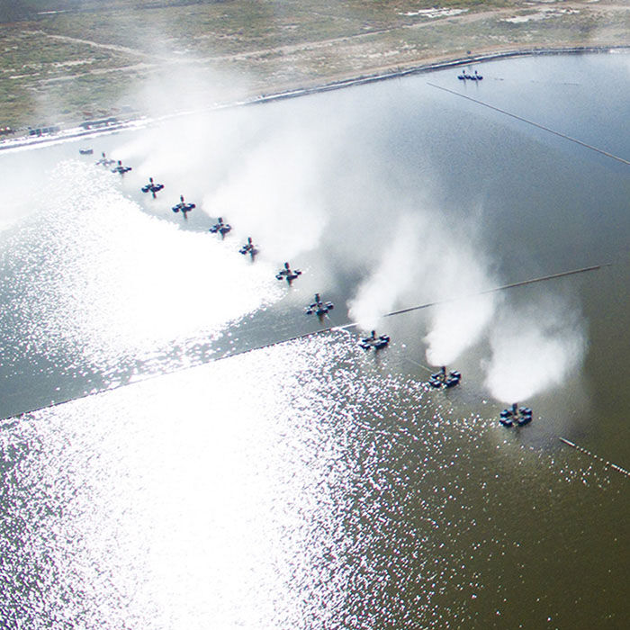 并且占地面積小、投資成本低。還有一種是風送式蒸發(fā)器、風送式蒸發(fā)器是把蒸發(fā)設備架在岸邊、利用高速旋轉(zhuǎn)的風機把水破碎噴灑在天空中進行蒸發(fā),這種和漂浮式蒸發(fā)器效果類似