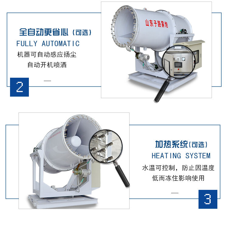 2.霧炮機(jī)是全自動(dòng)的還是手動(dòng)型的,如果是全自動(dòng)的價(jià)格肯定會(huì)高出一些,全自動(dòng)霧炮機(jī)可以實(shí)現(xiàn)遠(yuǎn)程遙控,配備觸摸屏,遙控器,粉塵傳感器,能定時(shí)定量噴霧,