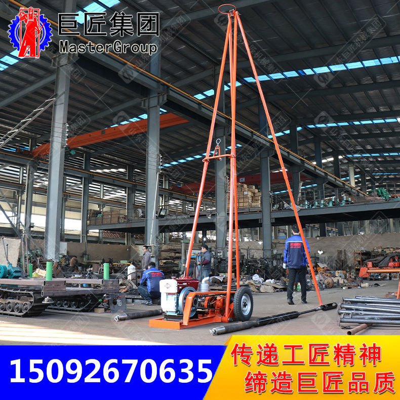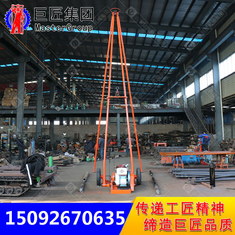 操作簡單而且機(jī)械化程度高,在正常情況下只需定員三人。 重量輕、結(jié)構(gòu)緊湊、解體性能好、搬運(yùn)方便,在山區(qū)可拆搬,因配備有一對(duì)膠輪,故在城市和其它道路平坦地區(qū)可用汽車拖帶來實(shí)現(xiàn)施工孔位的移動(dòng)。