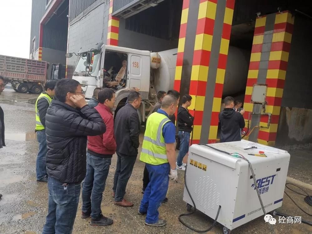 小編按照約定時(shí)間剛到現(xiàn)場(chǎng),就看到熱心的楊站長(zhǎng)召集了臨近的幾家攪拌站站長(zhǎng)早已在我們的攪拌站高壓清洗機(jī)旁等候,都想一睹高壓清洗機(jī)的“威懾力吧!