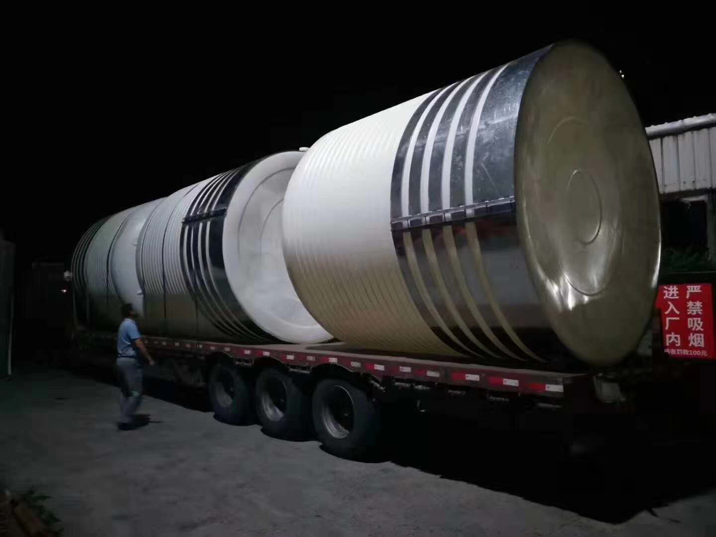特性三:常壓產(chǎn)品,不可施于超過常壓(1個大氣壓力)以上之正壓或負(fù)壓;若需攪拌或酸堿濃度比重在1.2以上時,應(yīng)加裝補(bǔ)強(qiáng)套及加厚桶體壁厚為宜。此項(xiàng)特性尤其在盛裝容積超過10000L以上的桶體特需注意之。(硫酸、硝酸濃度超過28%一律使用特級產(chǎn)品并加裝補(bǔ)強(qiáng)套)